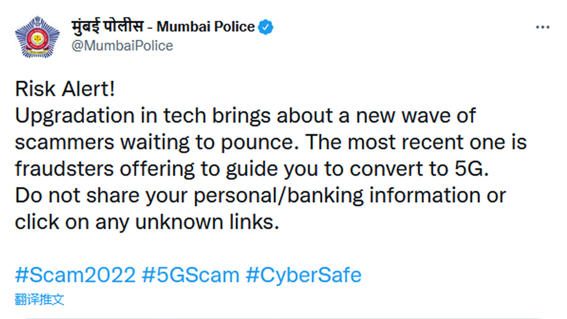 印度總理納倫德拉·莫迪(Narendra Modi)于 10 月 1 日宣布在印度啟動(dòng) 5G 服務(wù),但是在帶來更快網(wǎng)絡(luò)體驗(yàn)的同時(shí),也出現(xiàn)了各種詐騙活動(dòng)。孟買警方稱:“欺詐者以提供 5G 升級(jí)指南為由進(jìn)行欺騙”,同時(shí)表示新一波騙子可以通過個(gè)人信息或未知鏈接進(jìn)行詐騙。