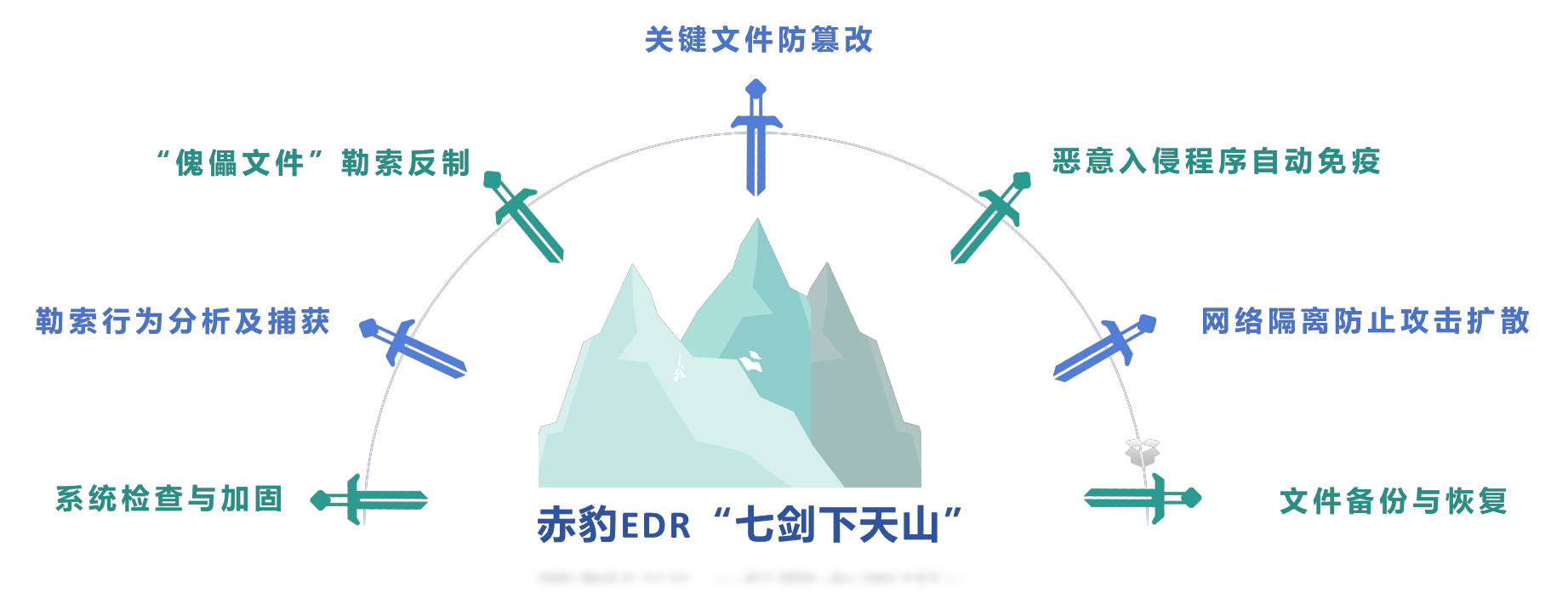 在勒索病毒面前,仿佛各大企業(yè)單位面臨“人為刀俎,我為魚肉”的局面。赤豹EDR“七劍下天山”,來為大家支招,提前布局終端安全建設(shè),避免將來被勒索病毒“宰一刀”。