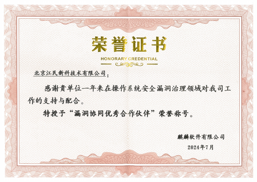 近日,麒麟軟件安全生態(tài)聯(lián)盟2024年第二次工作會(huì)議在北京成功召開。江民科技作為安全生態(tài)聯(lián)盟首批成員之一,應(yīng)邀出席會(huì)議并榮獲“漏洞協(xié)同優(yōu)秀合作伙伴”。