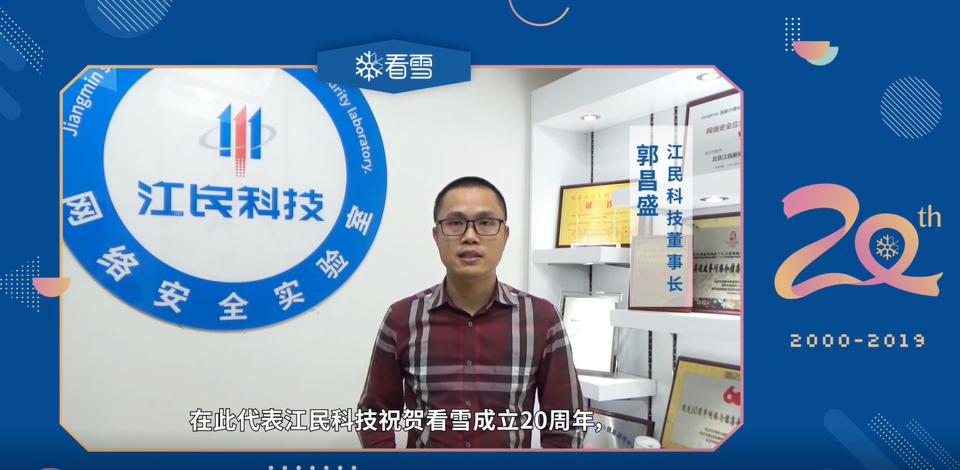 江民科技董事長郭昌盛為看雪成立20周年送上祝福,他給看雪送上了什么祝福呢?讓我們一起來看一看吧。