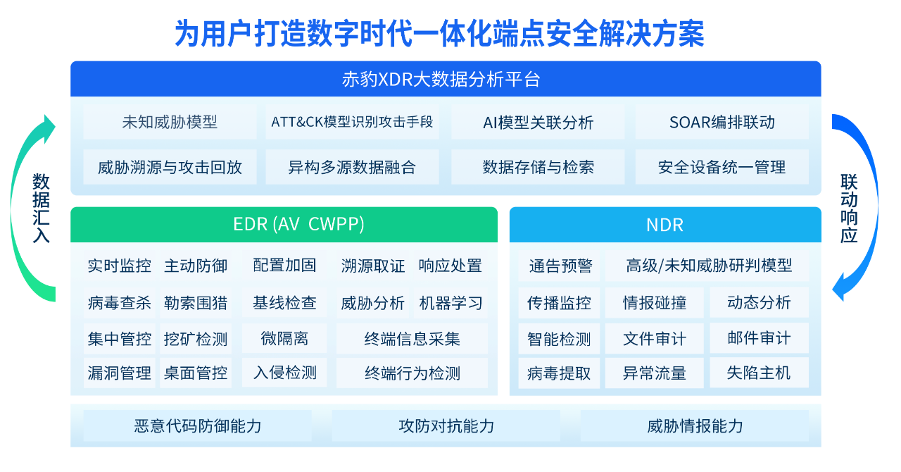 赤豹XDR將多個(gè)安全產(chǎn)品的能力整合于一體,可提供全方位、全生命周期的威脅情報(bào)收集、威脅檢測(cè)和響應(yīng)能力。赤豹XDR具備自適應(yīng)學(xué)習(xí)能力,可以根據(jù)威脅的不斷演化而不斷調(diào)整和優(yōu)化自身的防御策略,保持高效應(yīng)對(duì)威脅的能力。