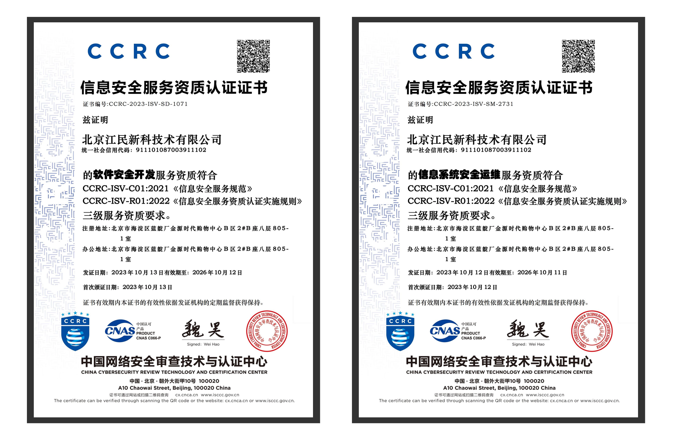 近日,經(jīng)過嚴(yán)格的審核與認(rèn)證評(píng)價(jià),江民科技通過了中國(guó)網(wǎng)絡(luò)安全審查技術(shù)與認(rèn)證中心(簡(jiǎn)稱CCRC)的信息安全服務(wù)資質(zhì)認(rèn)證,獲得信息系統(tǒng)安全運(yùn)維、軟件安全開發(fā)兩項(xiàng)三級(jí)服務(wù)資質(zhì)。
